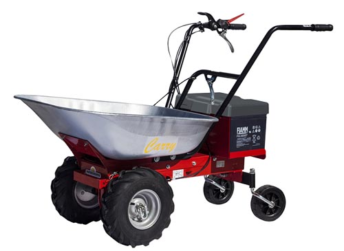Selbstfahrender Hochgrasmäher mit 4-Takt-Benzinmotor, großen Lufträdern (Laufflächenprofil) verbunden mit einem Schneckengewinde im Ölbad und Riemen und 5-gängiges Getriebe (3 Vorwärtsgänge + 2 Rückwärtsgtänge).