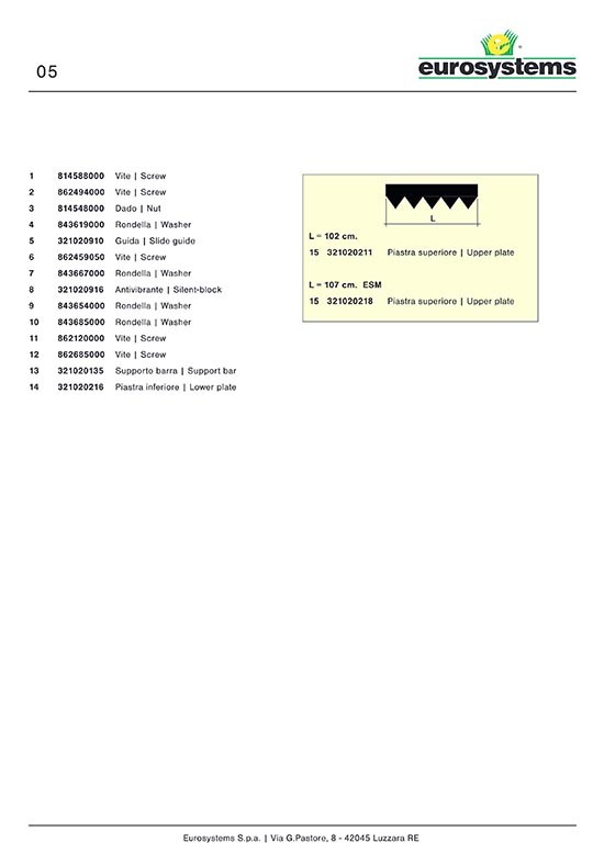 Messermitnehmer oben Für UNI Balken für P70 (M250) EVO Balkenmäher Eurosystems